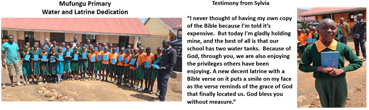 Our ministry’s work has become well known in Western Kenya, so our team receives many pleas from schools for new latrines, rainwater catchment systems, and Bibles. The goal of each project is not only to meet physical needs but to meet spiritual needs as well. Our dedications include a Gospel presentation and these projects open the doors for CEF Bible Clubs to be started in these facilities.