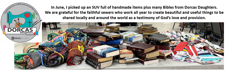 As always, we extend our thanks to the many people who support us by donating articles, providing financial support, and helping with collecting and packing. We are grateful for each one of you. May the Lord bless you and keep you and cause His face to shine upon you. (Number 6:24-25)