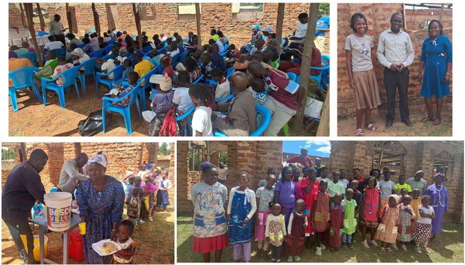 Delvine and Phylis, who attended the November 2025 Evangelizing Children training, invited our Kenyan team to visit their church in Mapera, which is in the interior of Western Kenya. Although the church building is still under construction, the leaders are faithfully sharing the Word of God. Delvine and Phylis have already started a Good News Club, which met during our team’s visit. Seventy-five children, plus a number of adults attended. Victor shared from John 3:16 how deeply God loves us and what a great sacrifice He made by giving His only Son for our salvation. The team distributed Bibles and encouraged the children and adults to read the Word and allow it to guide their lives. We prepared and served a meal to all the attendees plus 30 people from the village who came to learn what all the excitement was about. This was a blessed time of fellowship.