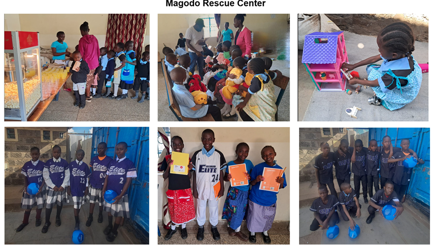 We visited Magodo Rescue Center in January as well. This orphanage, home to 300 children, has been part of our journey from the ministry’s inception. The children are always excited when we come, but this visit brought surprises that delighted them. The popcorn machine intrigued them, and the gifts of Winnie the Pooh characters and books, footballs (soccer balls), and the Richmond Elite jerseys for both the boys’ and girls’ teams were treasures. The girls’ dresses and boys’ shorts, puzzles, coloring materials, and toys added to the excitement. The teachers shared that this extraordinarily day will long be remembered.